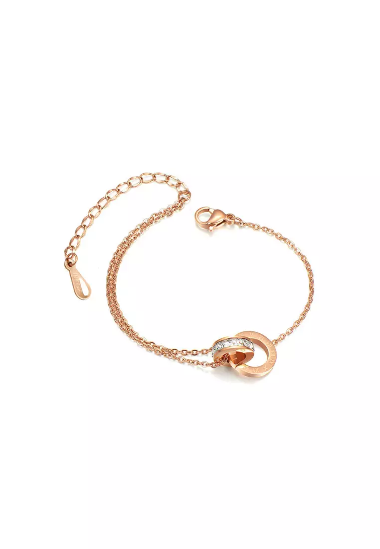 Athena Interlocking Roman Numeral Bracelet in Rose Gold