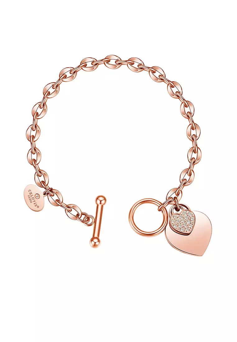 CELOVISLa Devotion CZ Heart Tag Pendant Toggle Clasp Bracelet in Rose Gold4591.00