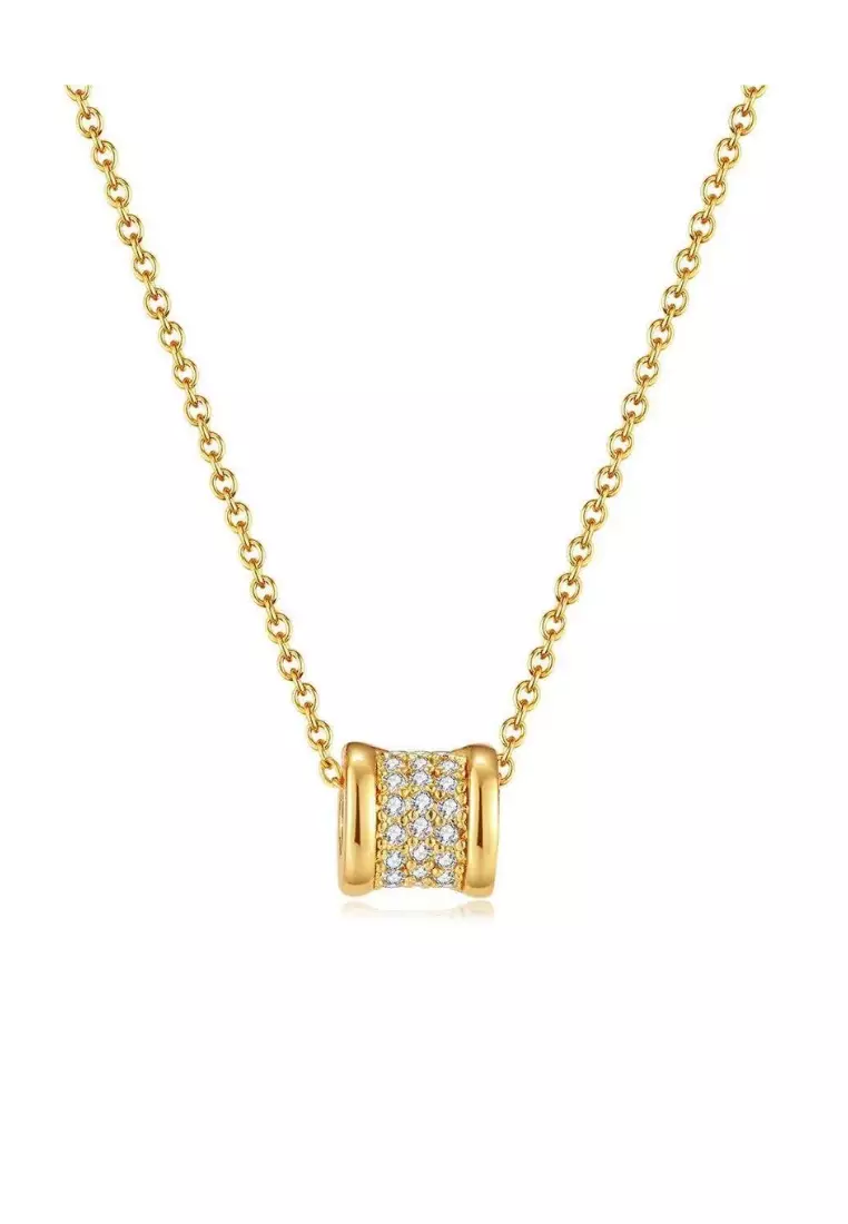 Lumina Zirconia White Barrel Pendant Chain Necklace in Gold
