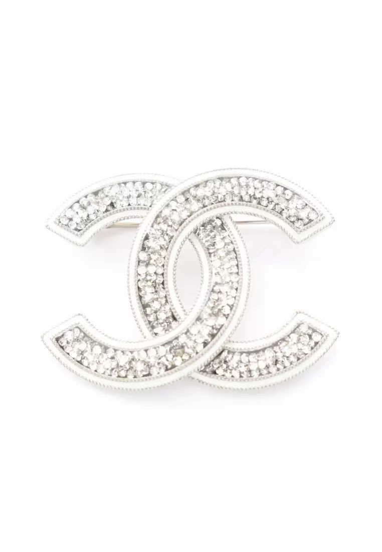 ChanelPre-Loved Chanel coco mark brooch Silver clear A23C88210.00