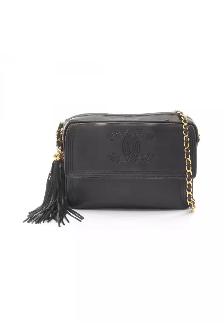 Pre-Loved Chanel coco mark Shoulder bag chain shoulder bag lambskin black gold hardware fringe