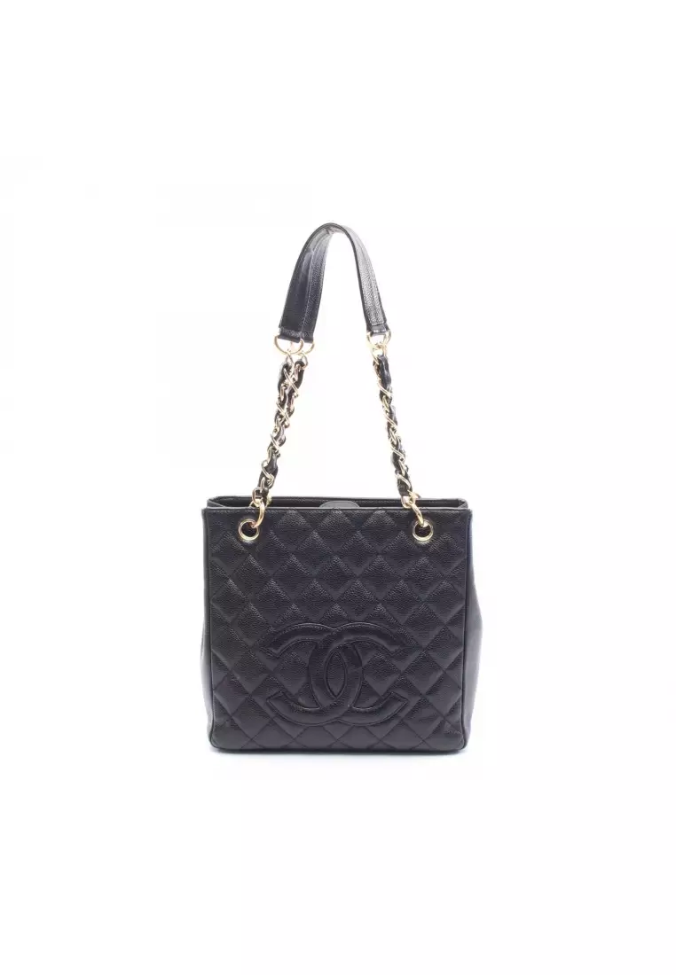Pre-Loved Chanel matelasse PST chain shoulder bag chain tote bag Caviar skin black gold hardware