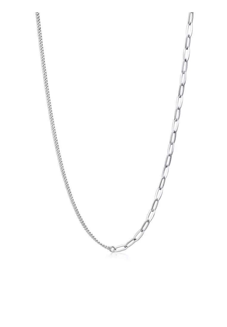 18K White Gold Curb Chain and Paperclip Chain Necklace for Women 94223N