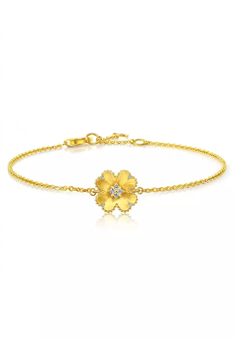 Chow Sang Sang999 24K Solid Gold Rhyme Four-Leaf Clover Diamond Bracelet for Women 95101B77845.00