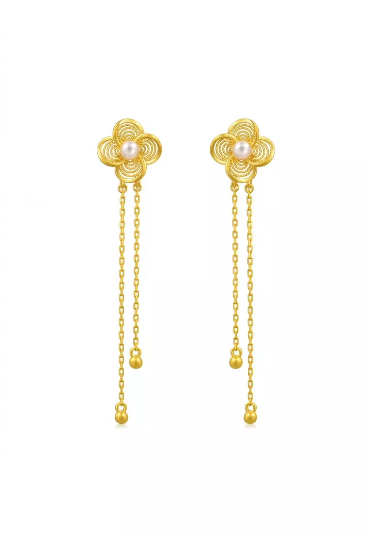 Chow Sang SangChinese Wedding 24K Sold Gold Four Clover Leaf Drop Earrings 95619E60755.00