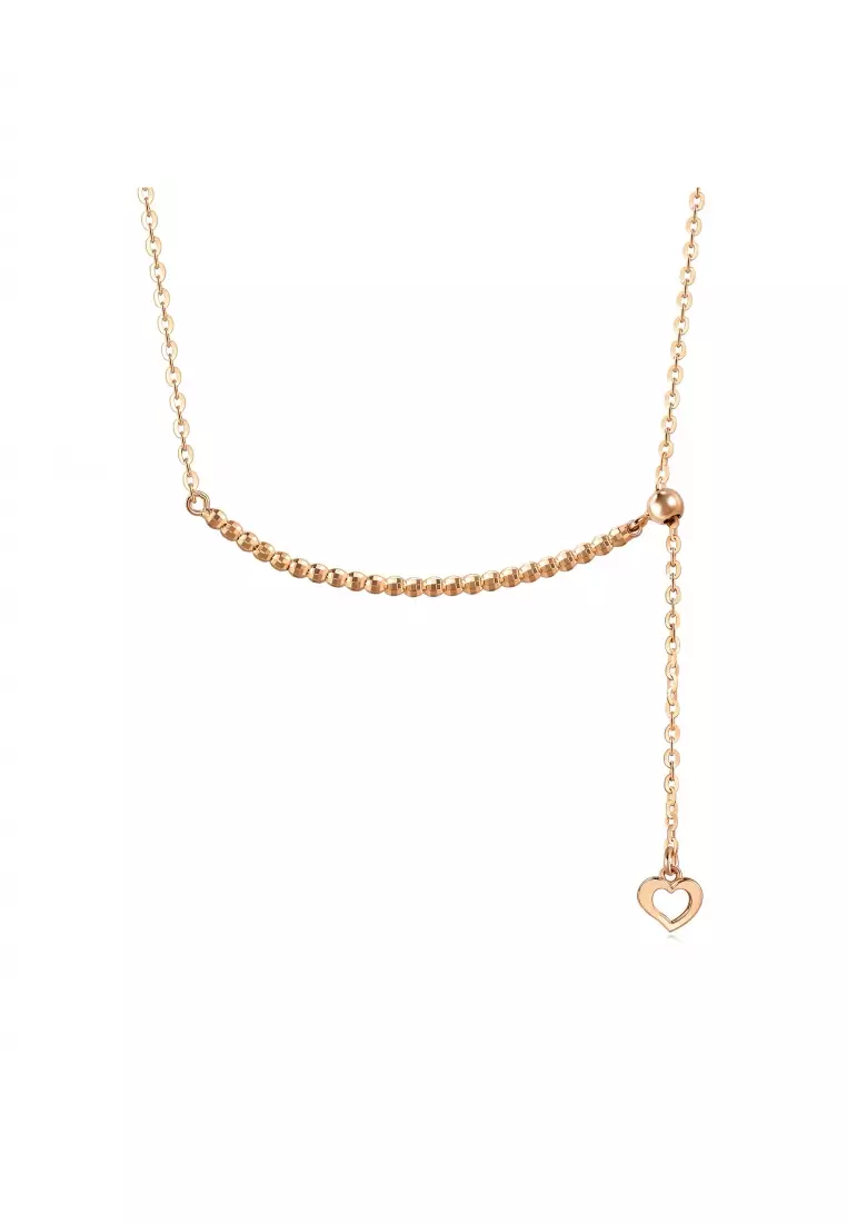 Delicate Gold 18K Rose Gold Dangle Heart Necklace for Women 92678N