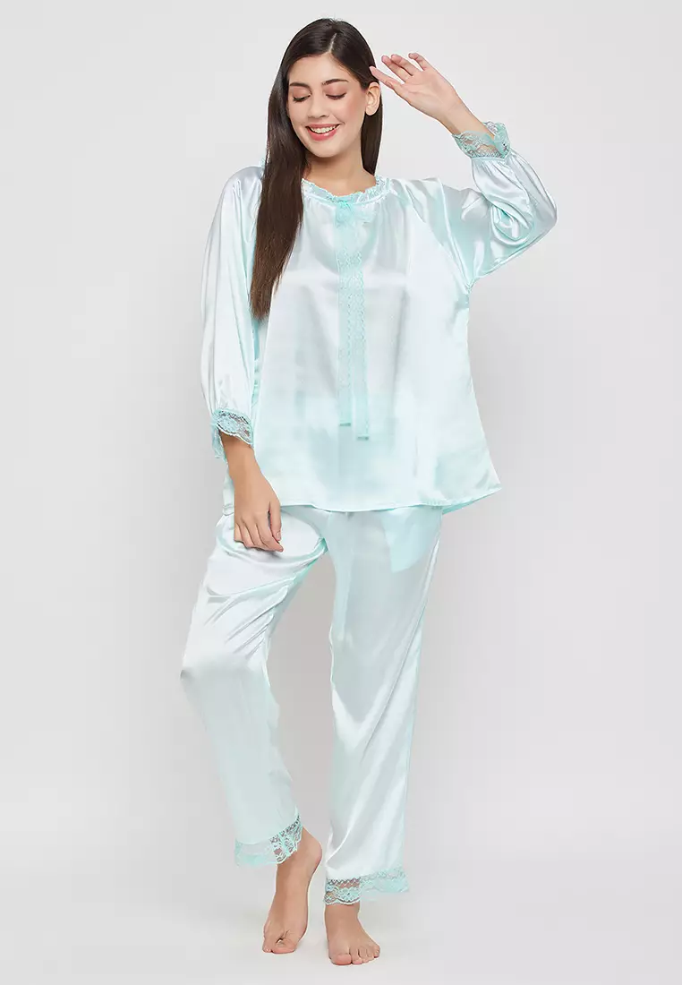 CloviaClovia Chic Basic Top & Pyjama Set in Baby Blue - Satin3721.001117.00