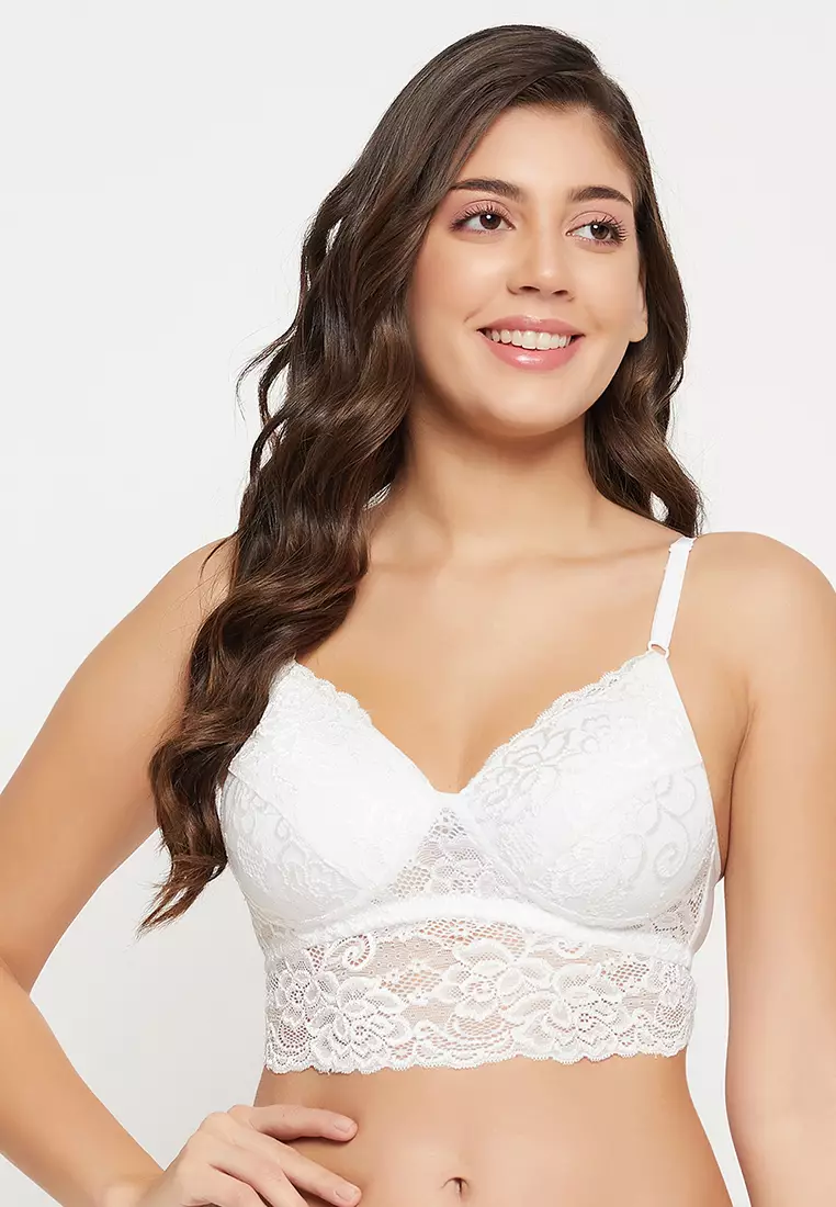 Clovia Padded Non-Wired Full Cup Longline Bralette in White - Lace