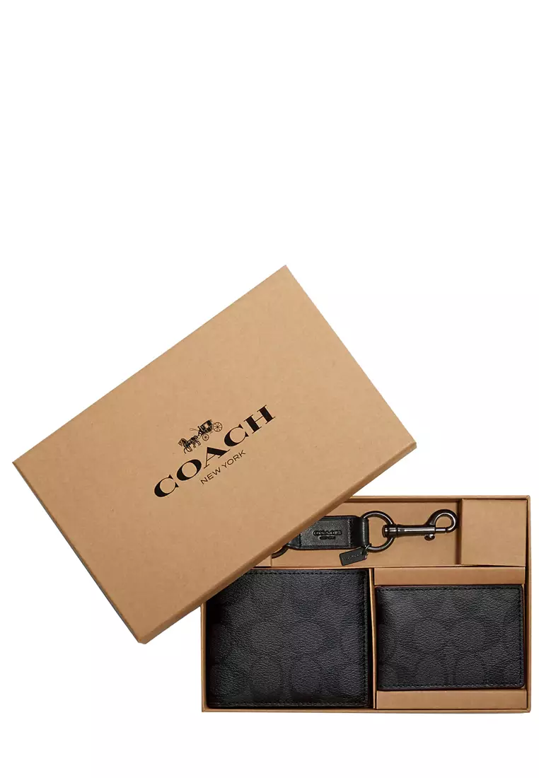CoachBoxed 3 In 1 Wallet Gift Set In Signature Canvas in Charcoal/ Black CW34424242.0012657.40