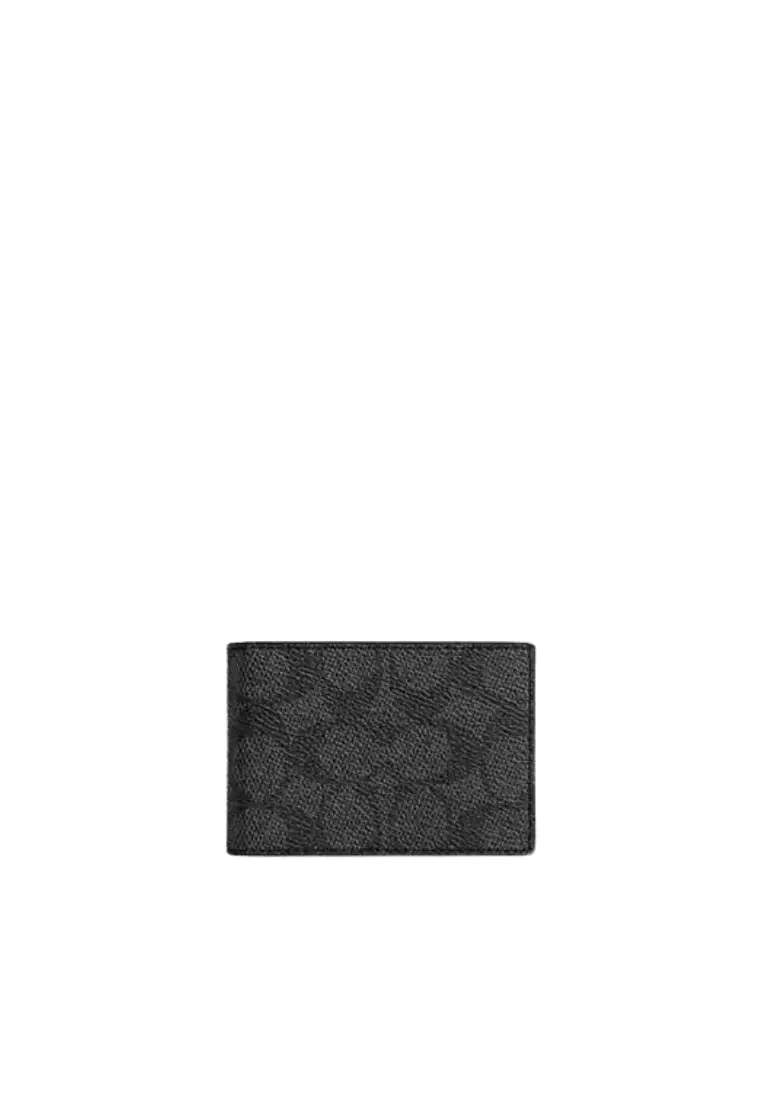 Coach Compact Billfold Wallet Signature In Charcoal Black CW368
