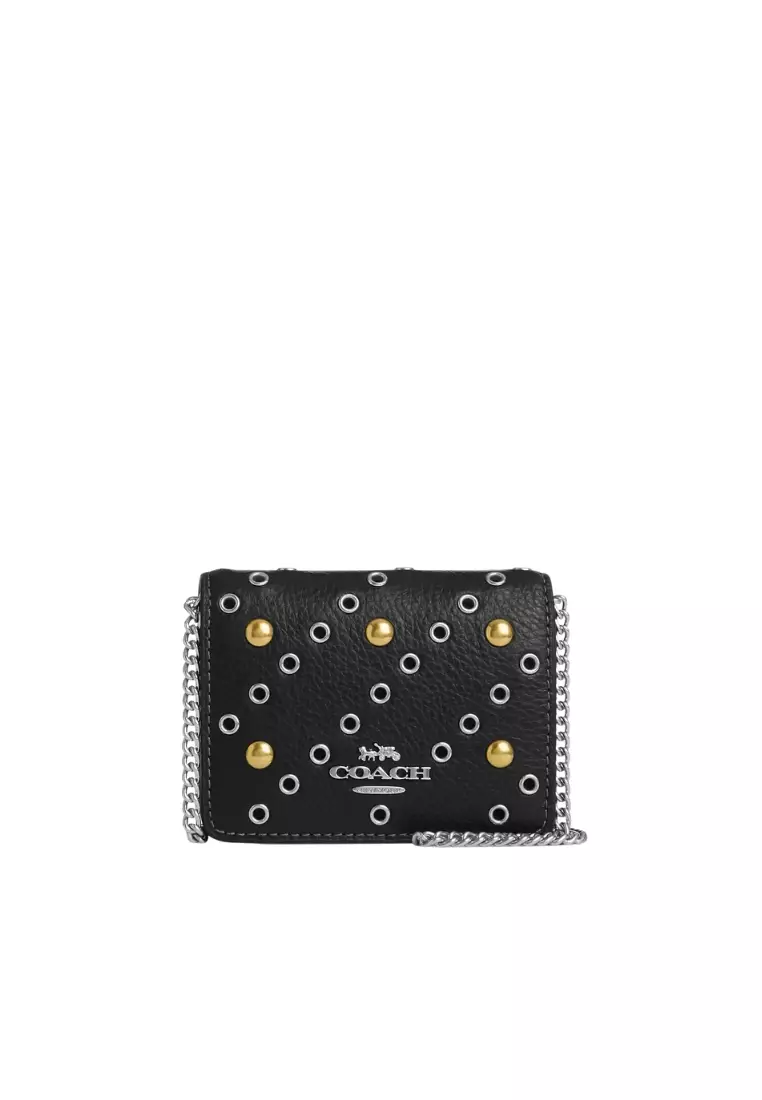 Coach Mini Wallet On A Chain With Rivets In Black Multi CCI80