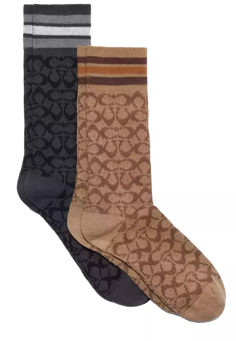 CoachCoach Signature Calf Socks in Khaki/ Black CH3979030.003261.64