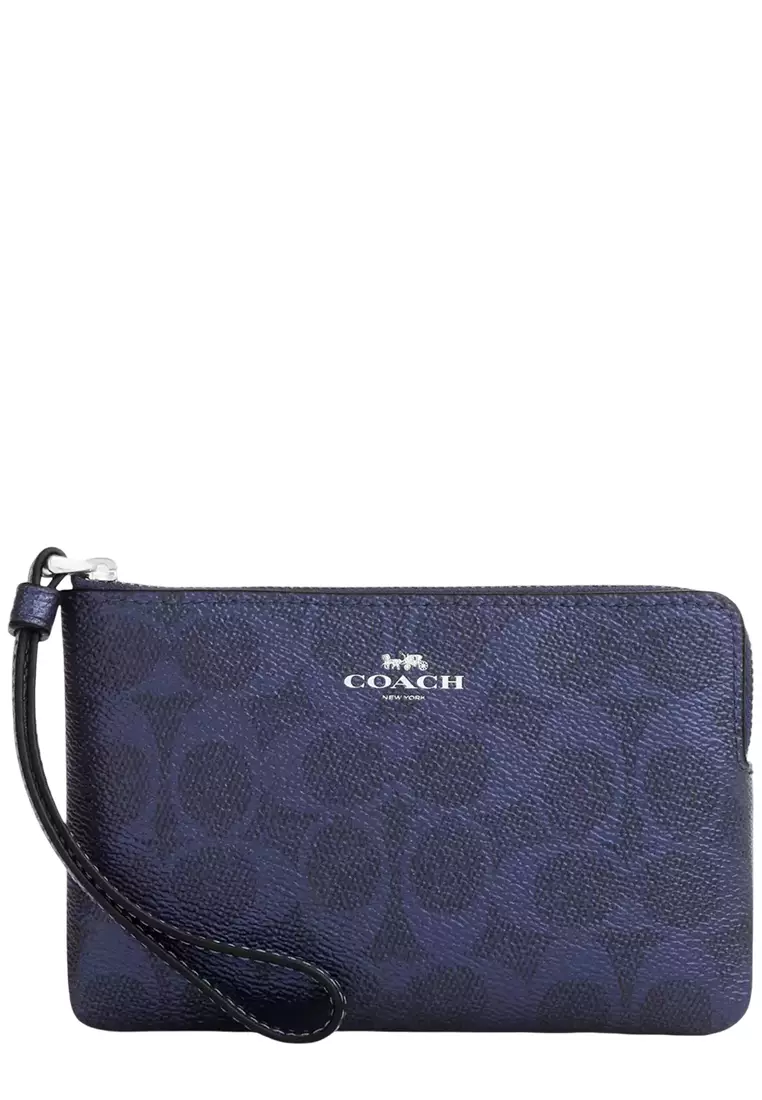CoachCorner Zip Wristlet In Signature Canvas - Blue/ Navy CCK7110375.004619.23