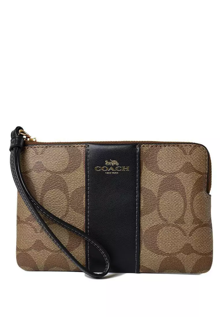 CoachCorner Zip Wristlet in Signature Canvas - Khaki/Black10441.006104.00