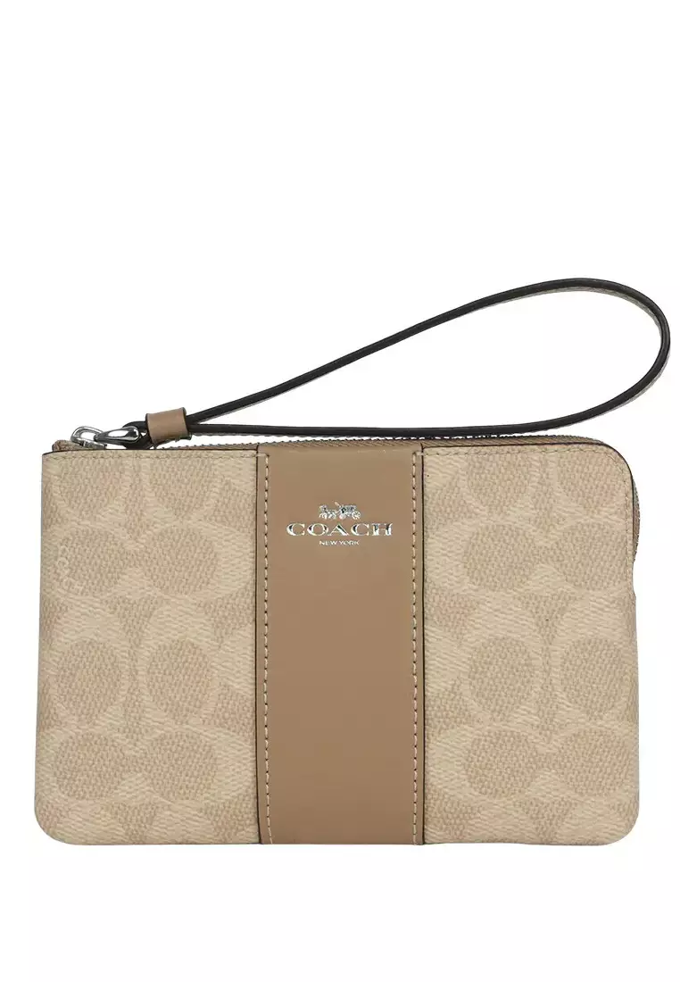 CoachCorner Zip Wristlet In Signature Canvas With Stripe - Sand Taupe10441.006104.00