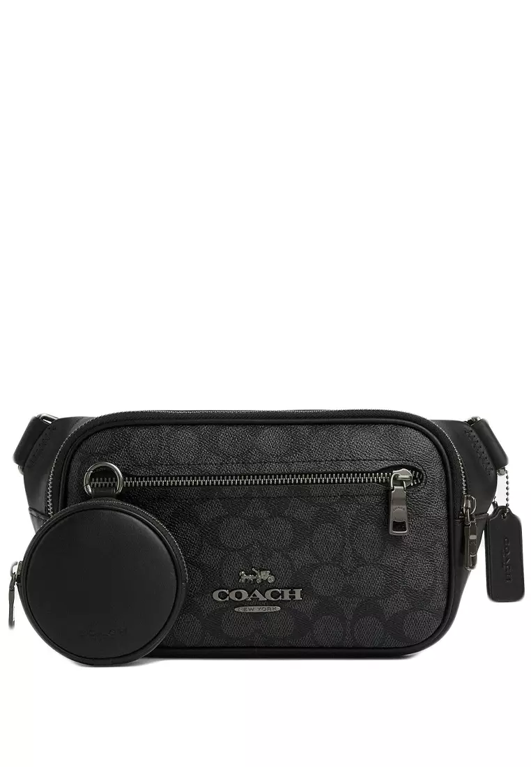 Mens Elias Belt Bag In Signature Canvas - Charcoal/Black