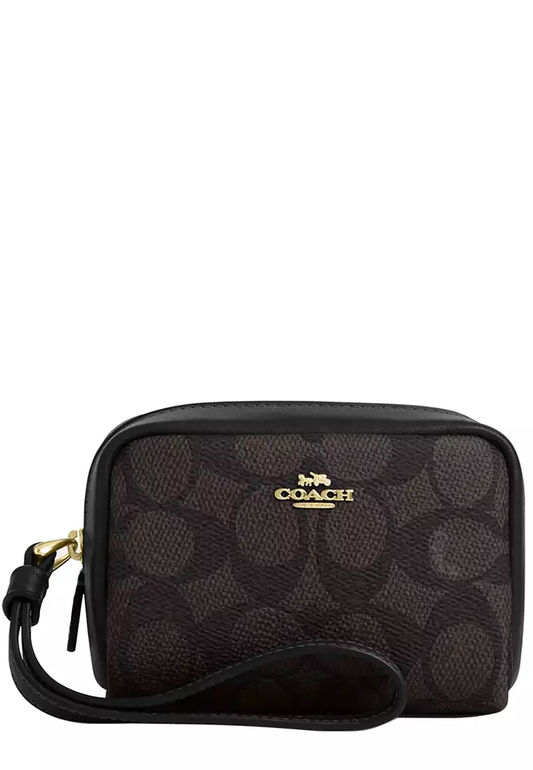 CoachPouch Wristlet In Signature Canvas in Walnut/ Black CW90712390.006203.47