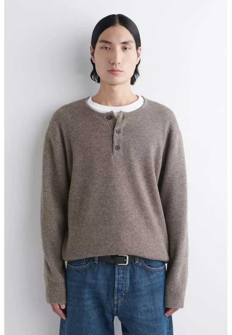 KNITTED MERINO-YAK HENLEY TOP
