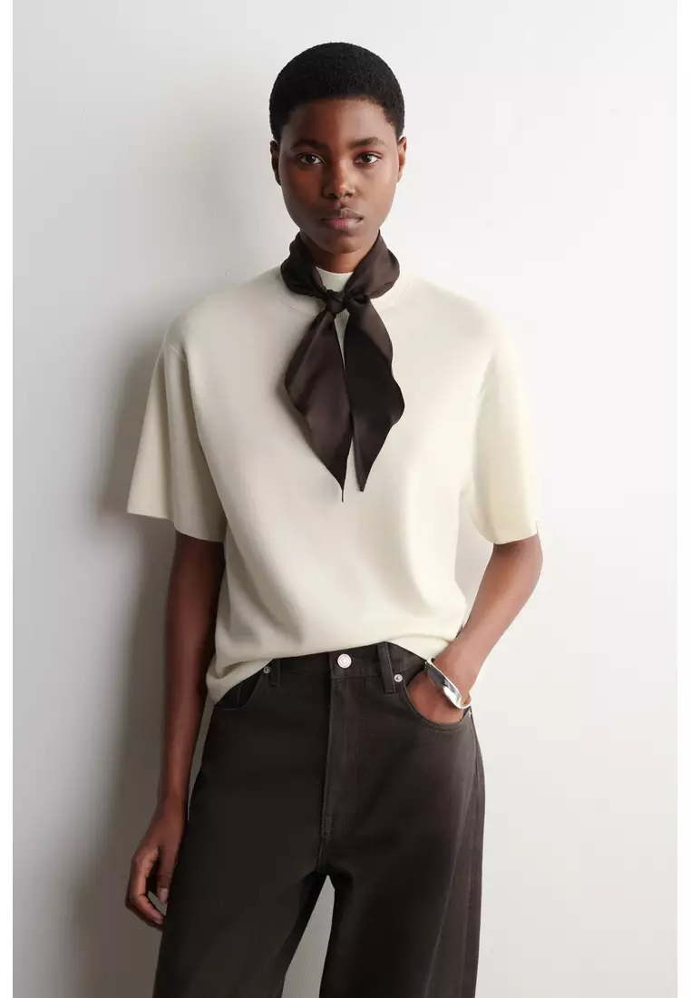 SCARF-DETAIL MERINO WOOL T-SHIRT