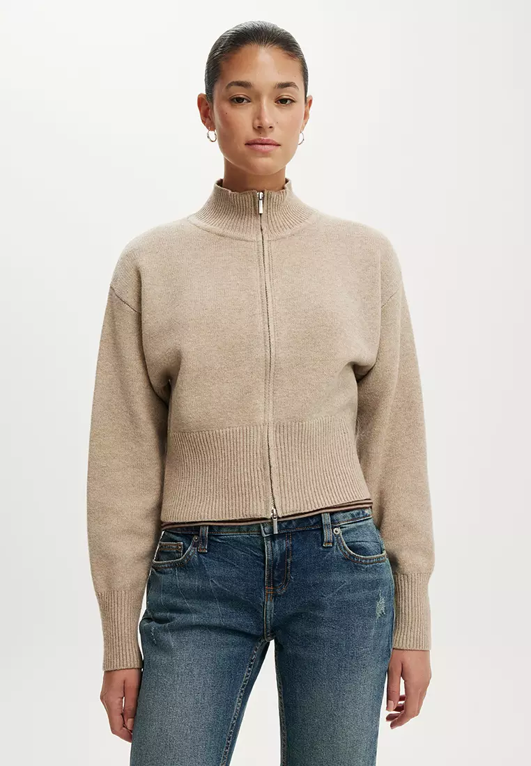 Lotus Cinched Zip Knit Sweatshirt