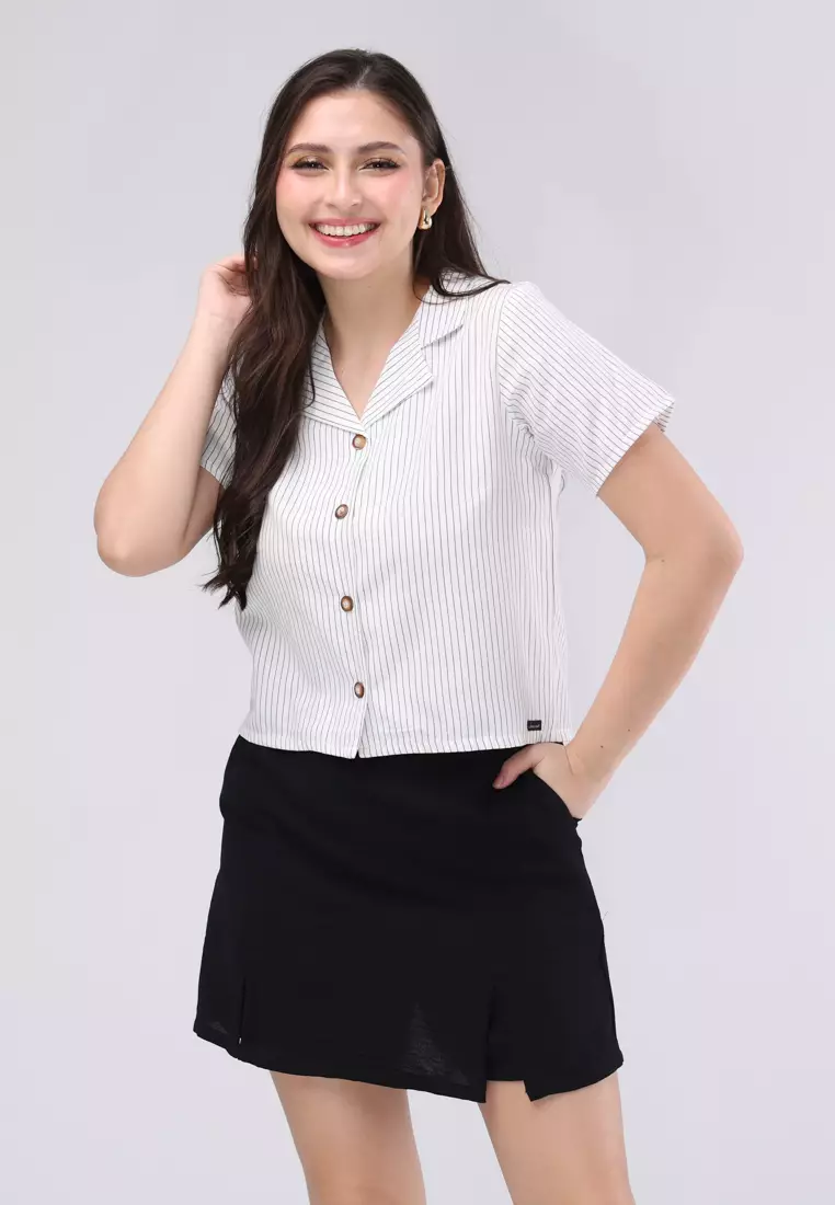 Cotton Stripes & Wrinkle Linen Short Sleeves Terno Skort