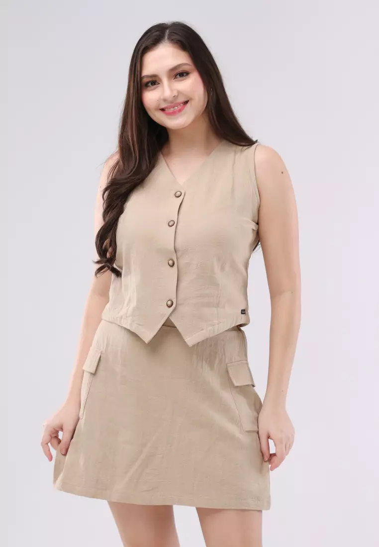 Crumpled Cotton Sleeveless Vest Terno Skort