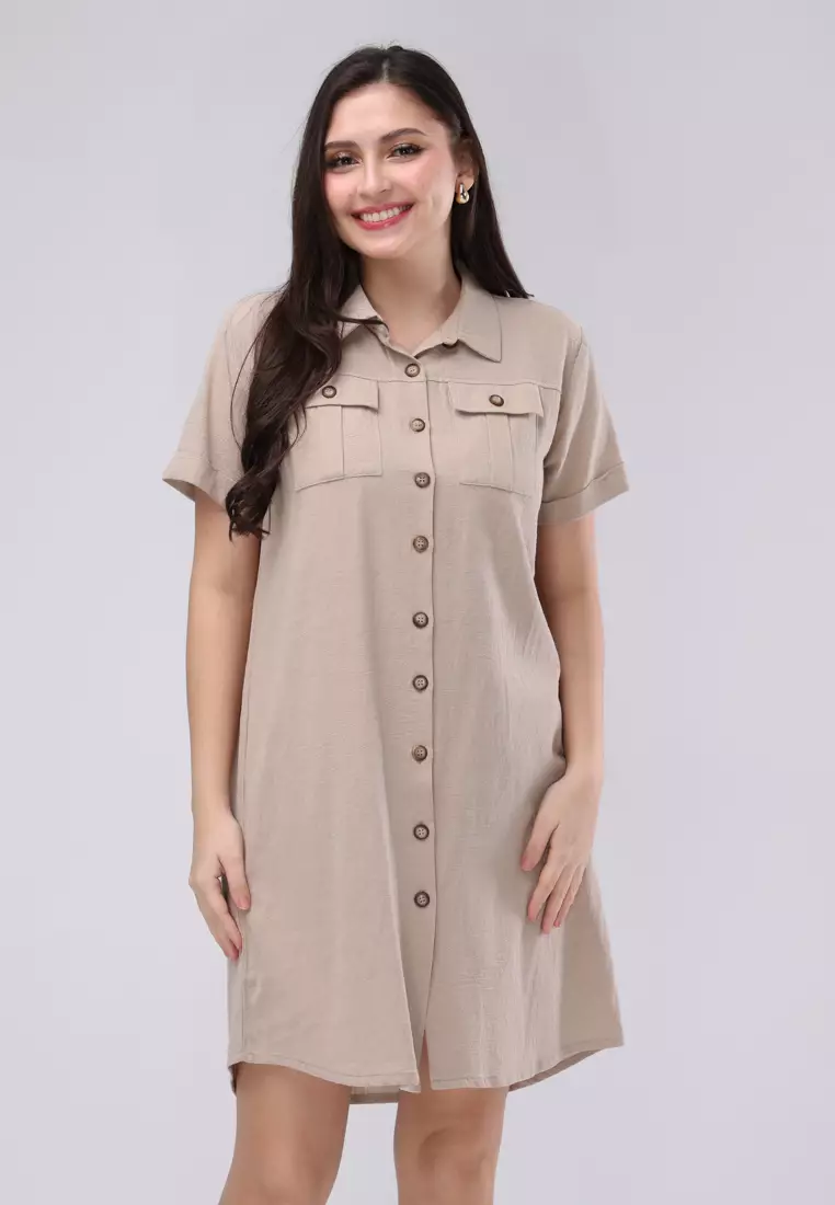 CrissaCrumpled Plain Cotton Woven Short Sleeves Dress799.75570.00
