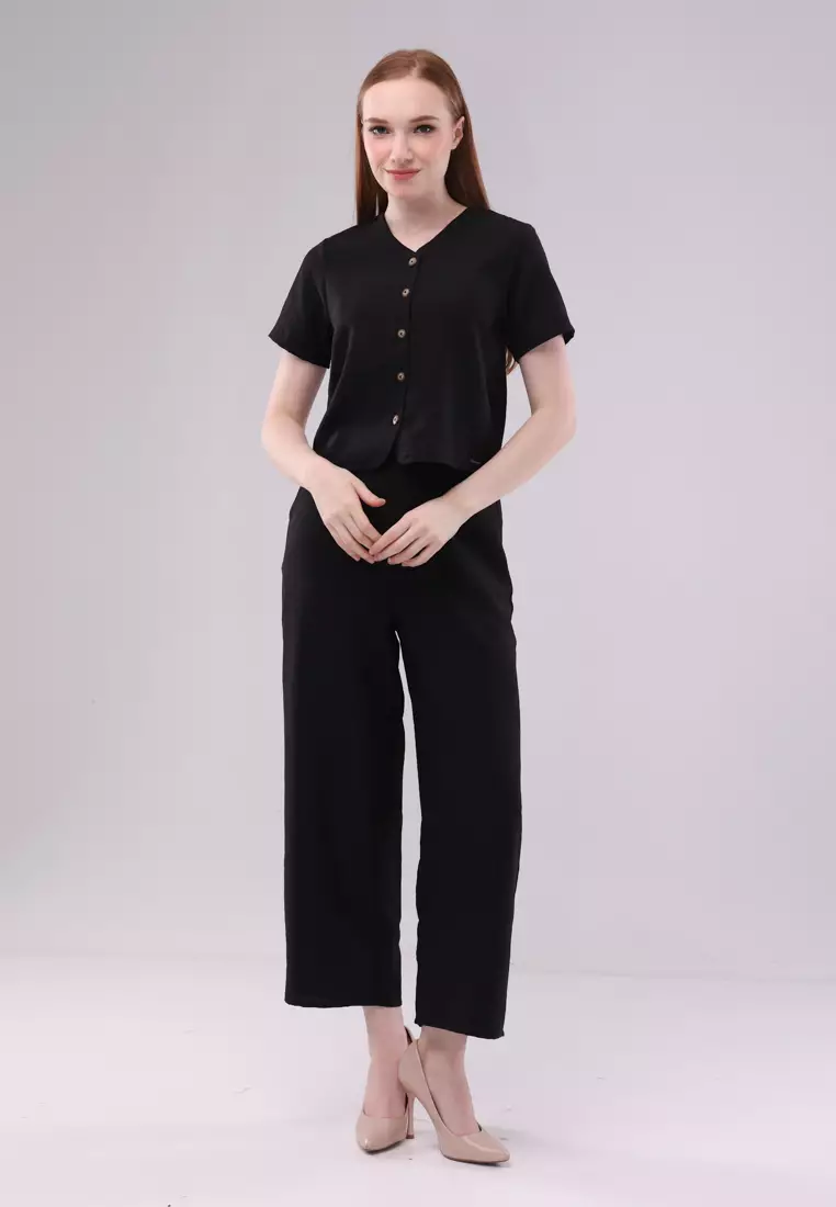 CrissaPlain Soft Wrinkled Woven Short Sleeves Terno Pants799.75520.00