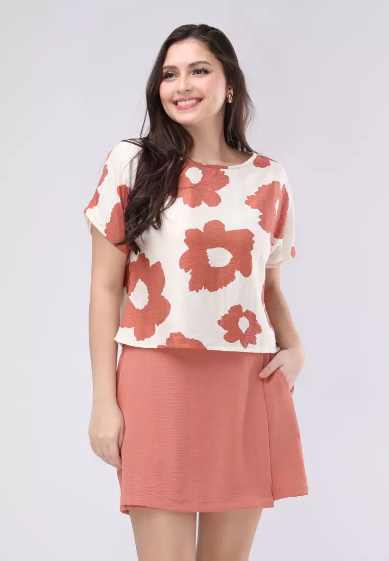 Printed Linen & Wrinkles Linen Short Sleeves Terno Skort