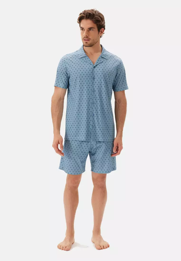 DAGİBlue Shirt & Shorts Knitwear Set, Micro Print, Shirt Collar, Regular, Short Leg, Short Sleeve Sleepwear for Men4499.003183.00