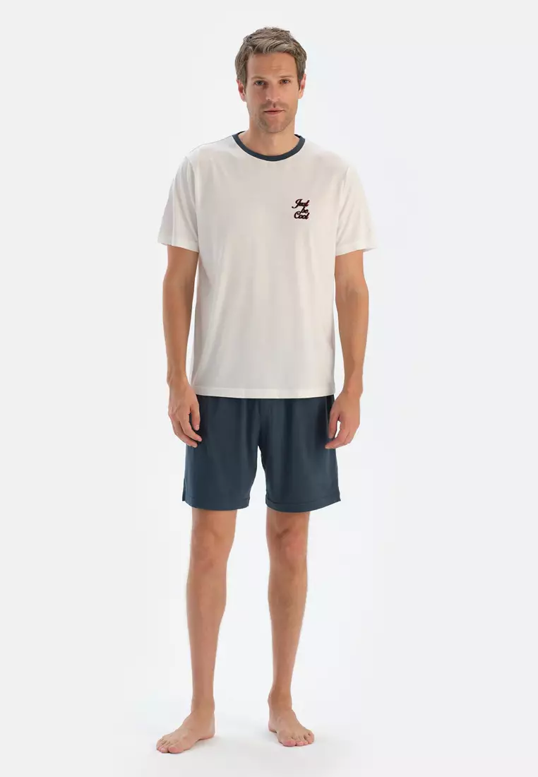 DAGİEcru T-Shirt & Shorts, Slogan Print, Crew Neck, Regular Fit, Short Sleeve Sleepwear for Men4499.002583.00
