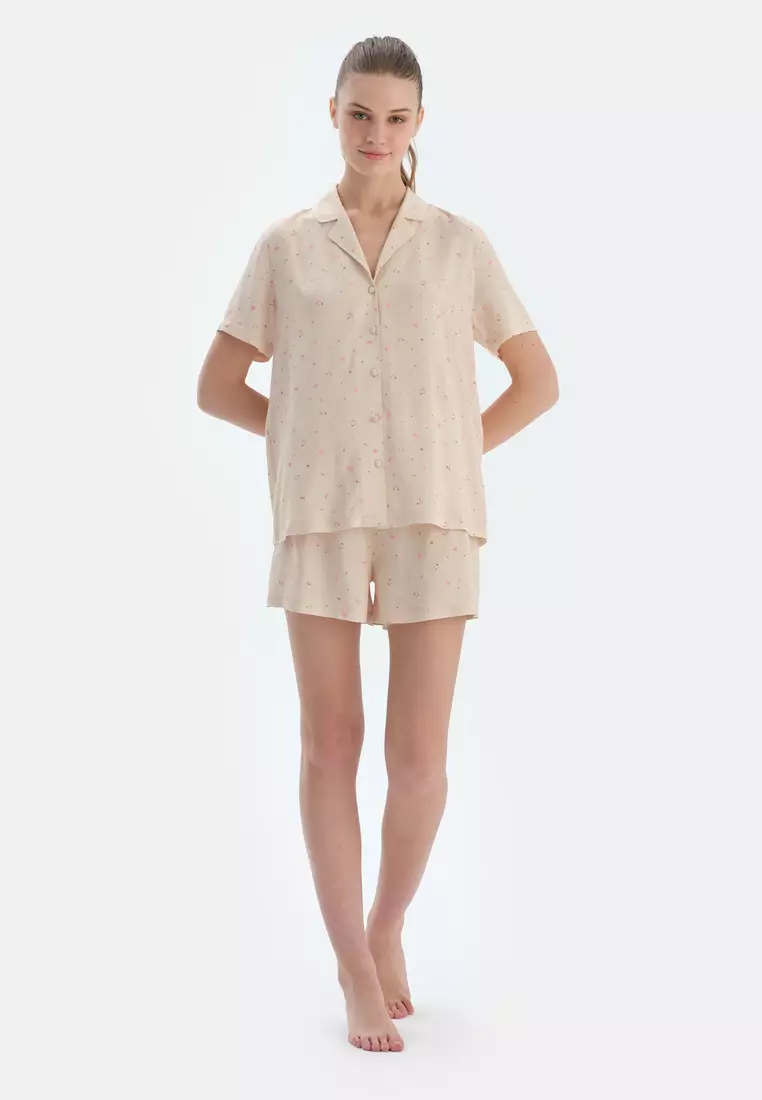 Ecru Woven Bottom Shorts, Floral, Regular, Short Leg, Sleepwear for Women