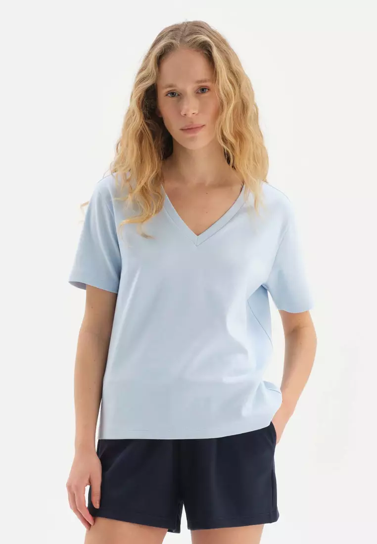 DAGİLight Blue Tshirts, V-Neck, Oversize, Short Sleeve Loungewear for Women1999.001535.00