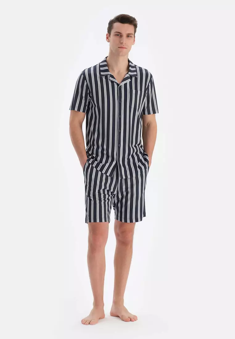 DAGİMulticolor Shirt & Shorts Knitwear Set, Striped, Shirt Collar, Regular, Short Leg, Short Sleeve Sleepwear for Men4799.002826.00