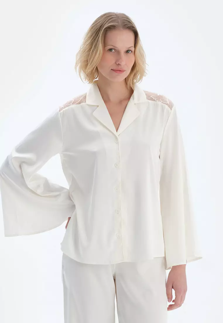 DAGİOff White Shirt, Shirt Collar, Regular, Long Sleeve Sleepwear for Women3499.001863.00