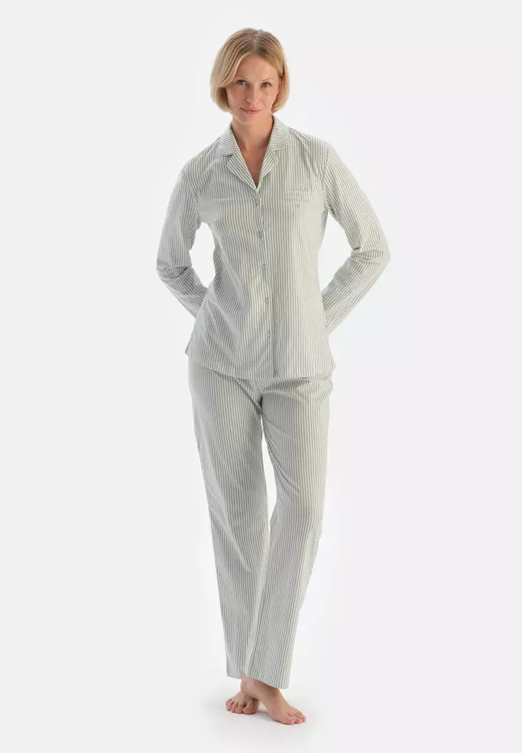 DAGİTurquoise Shirt & Trousers, Striped, Shirt Collar, Regular Fit, Long Sleeve Sleepwear for Women5799.003505.00