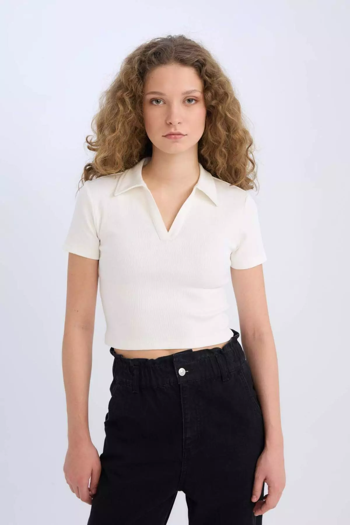 DeFactoFitted Polo Neck Basic Plain Ribbed Camisole Short Sleeve T-Shirt A0379Ax25Sm1899.001607.00