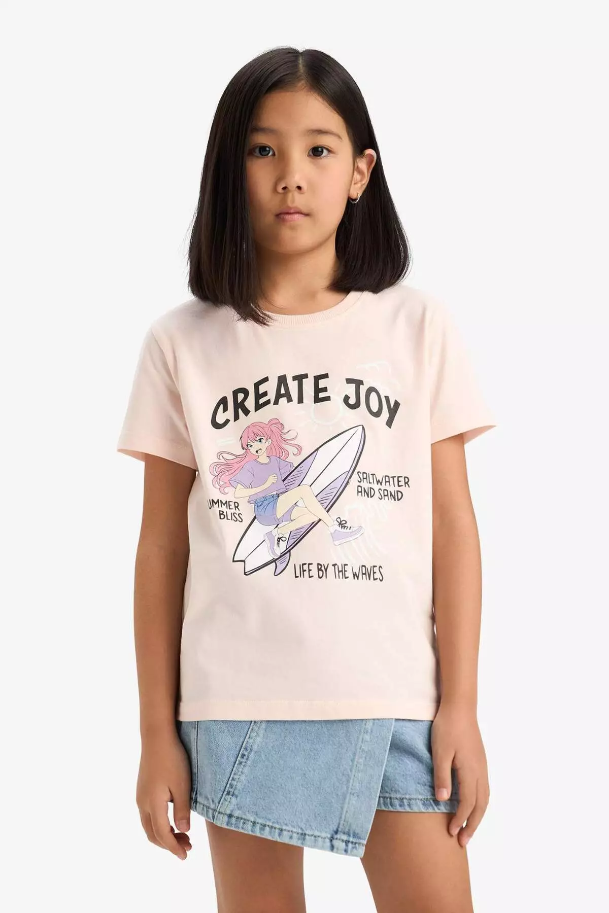 Girl's Crew Neck Anime Printed Short Sleeve T-Shirt E0350A825Sm