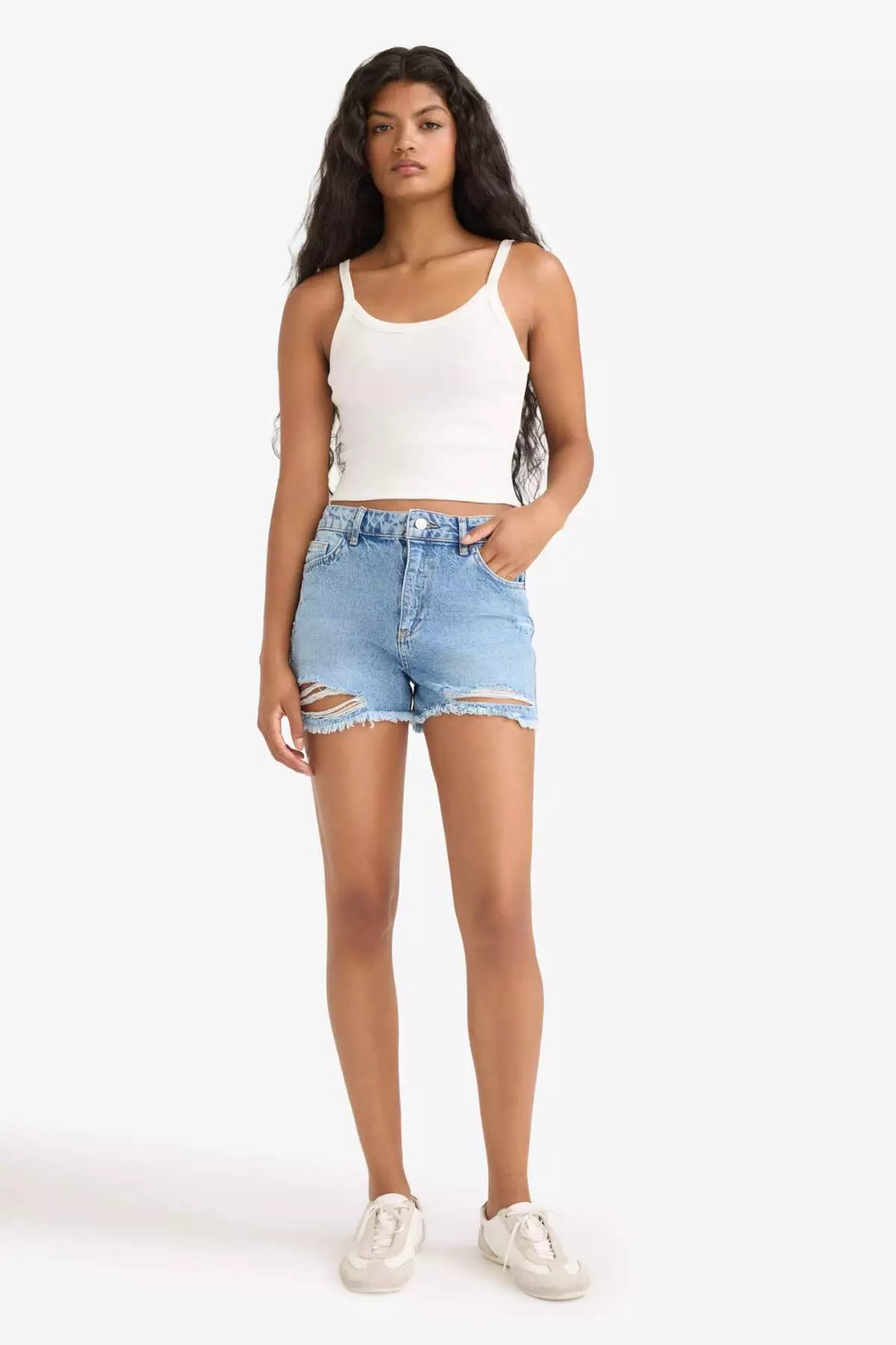 High Waist Cutout Jean Shorts E0504Ax25Sm
