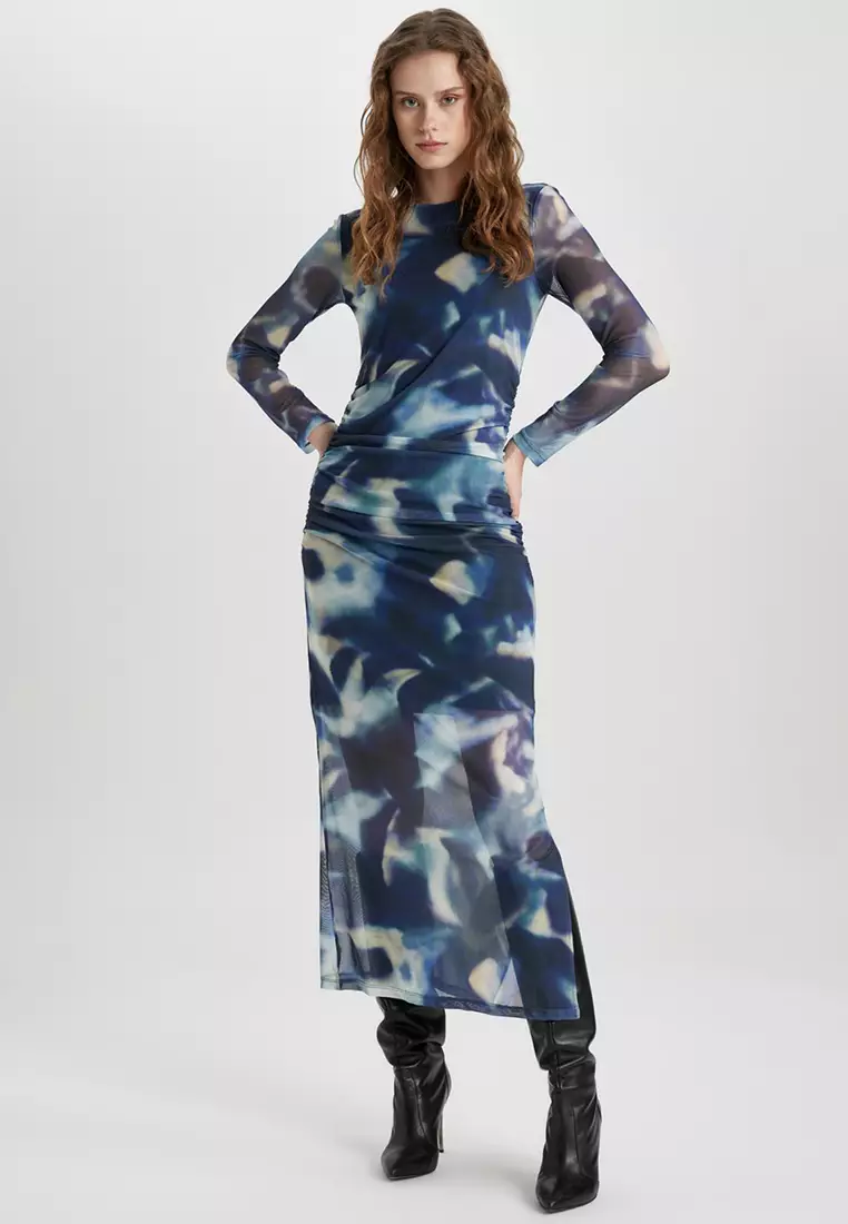 Printed Tulle Midi Dress