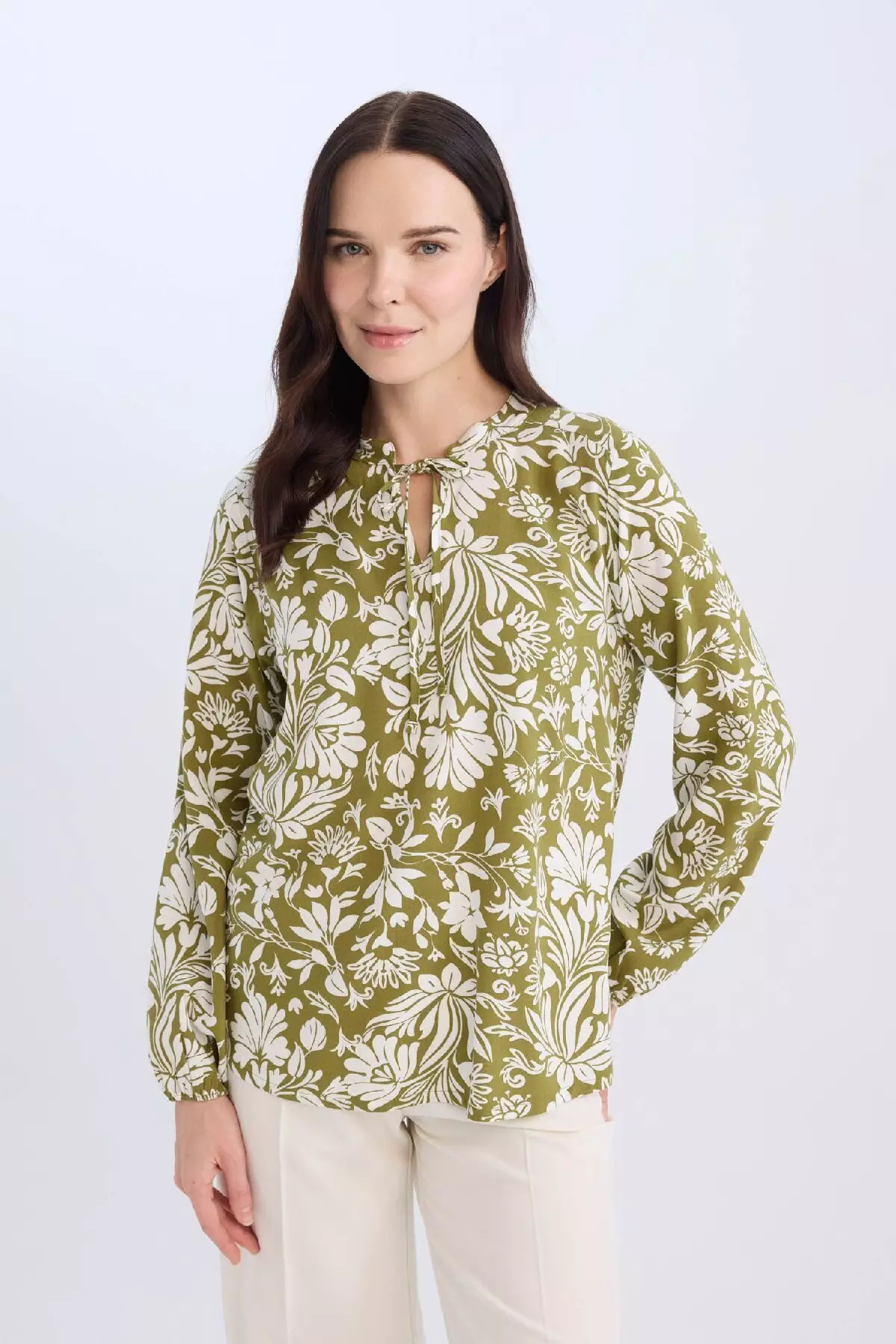 DeFactoRegular Fit Lace-Up Collar Patterned Long Sleeve Blouse N1809Az25Sp1799.001149.00