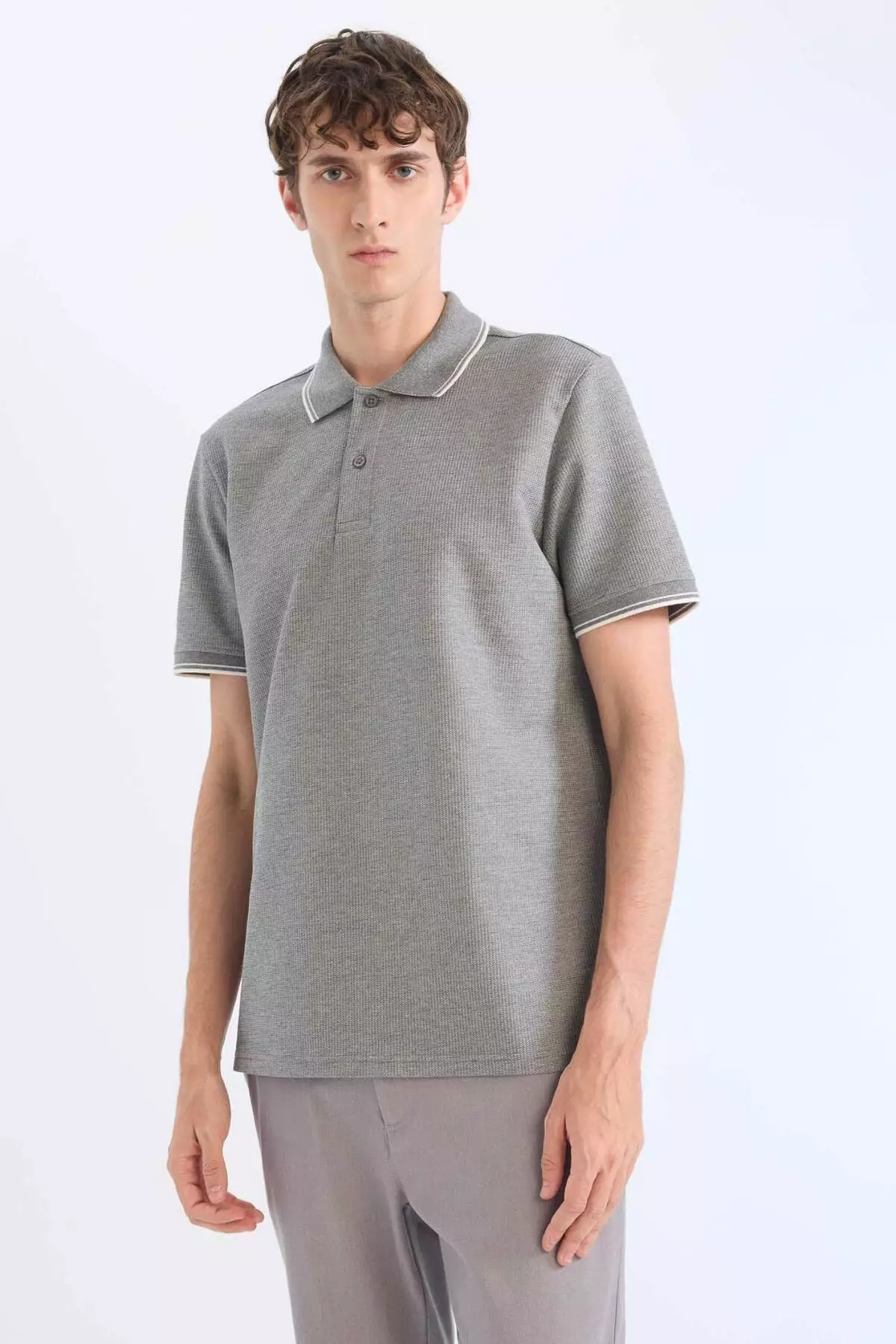 Regular Fit Polo Neck Short Sleeve Textured Waffle T-Shirt D7932Ax25Sp