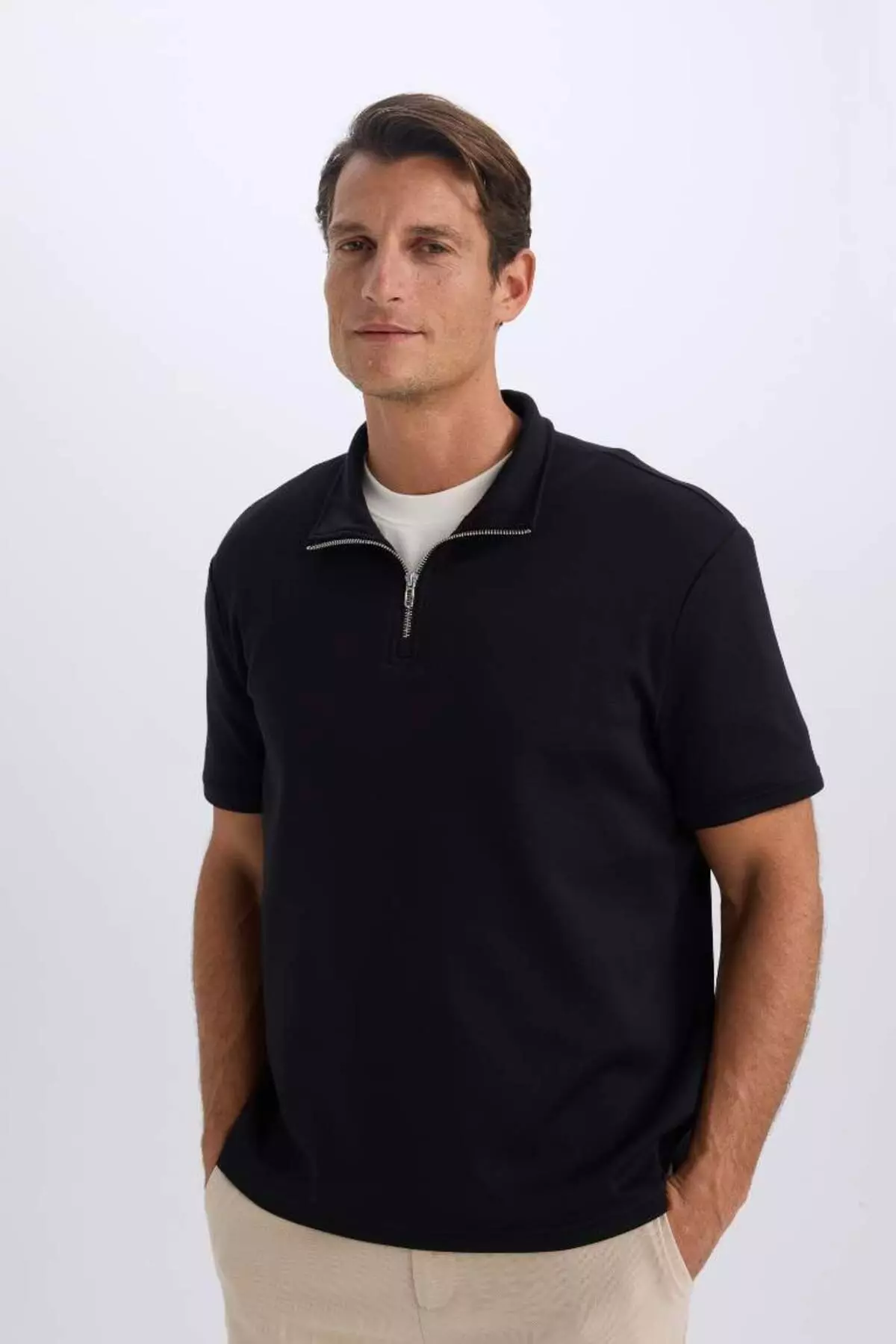 DeFactoRegular Fit Stand Collar Half Zip Heavy Fabric Short Sleeve Black T-Shirt B6502Ax25Sp2769.001977.90