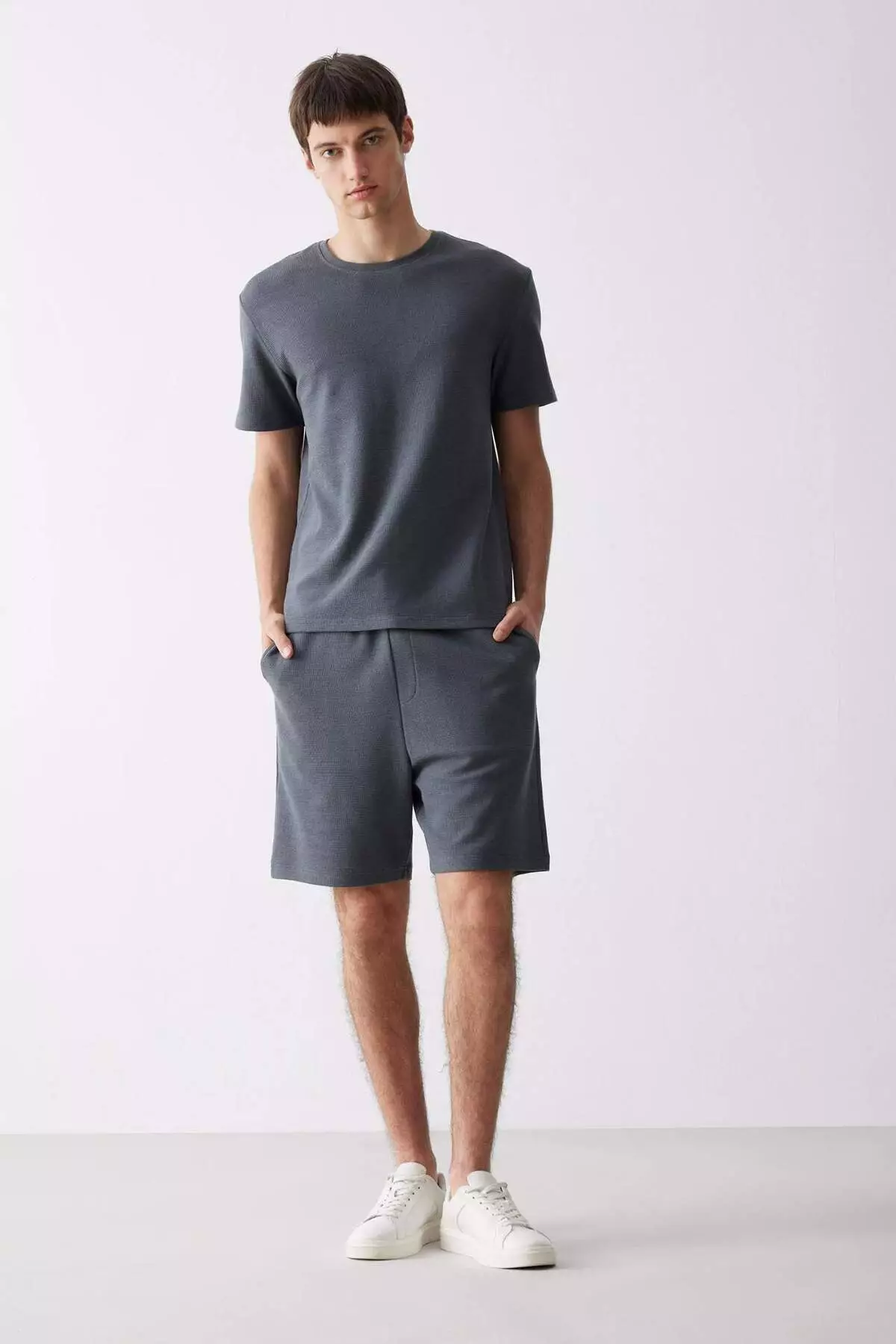 Regular Fit Textured Waist Lace-Up Shorts E2588Ax25Sm