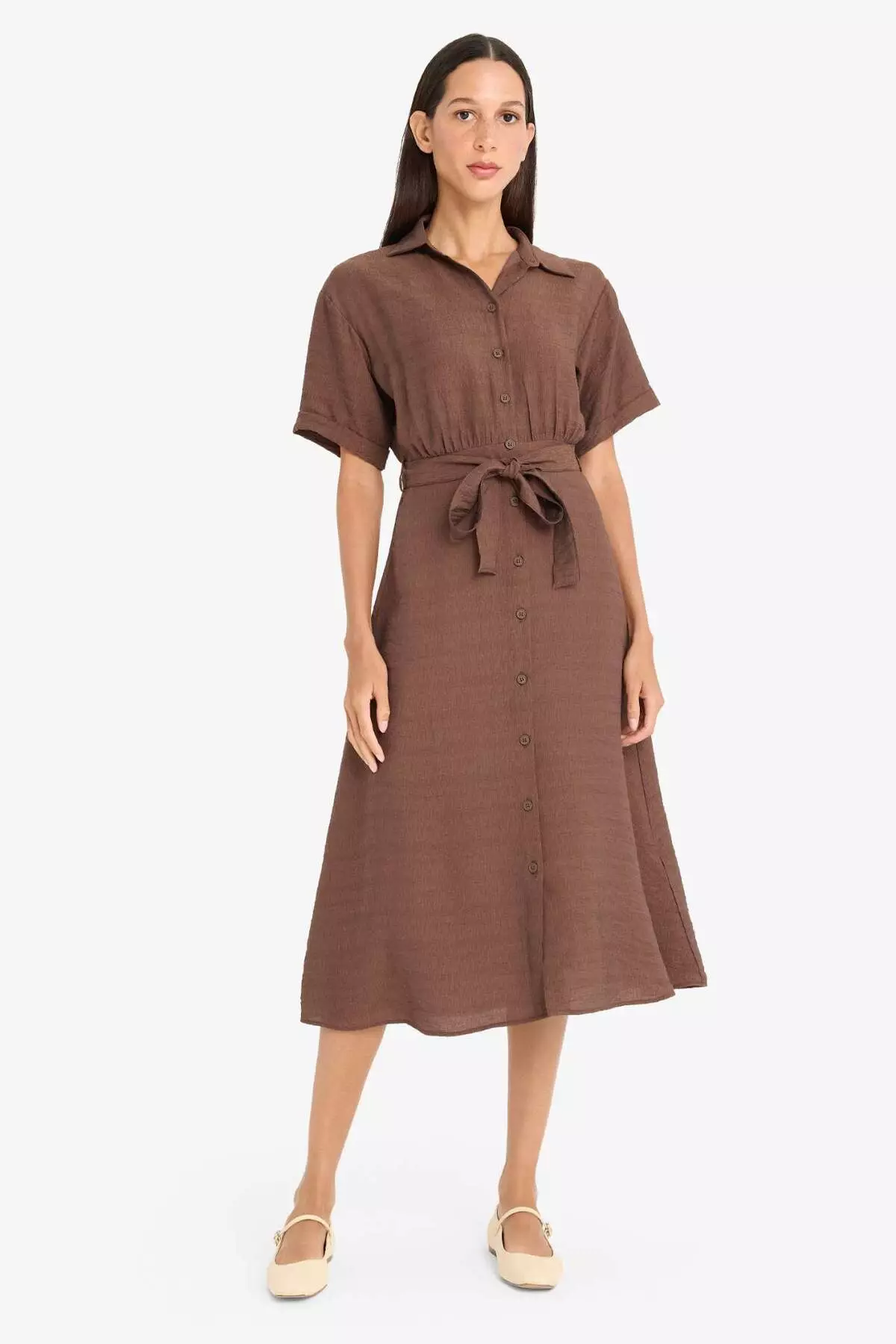 DeFactoShirt Collar Belted Short Sleeve Red Midi Summer Dress F2113Ax25Sm3649.003400.00