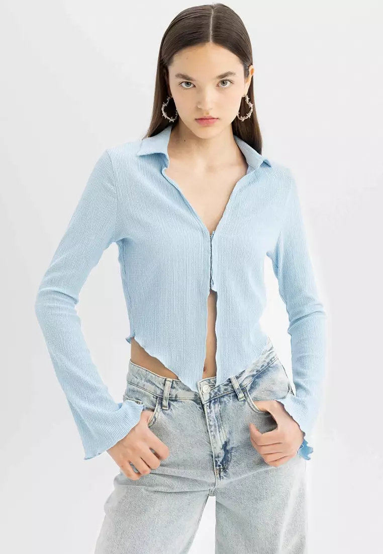 Textured Cropped Shirt