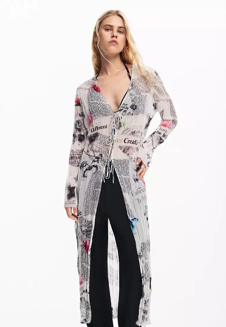 Desigual Woman Long blouse with newspaper print.