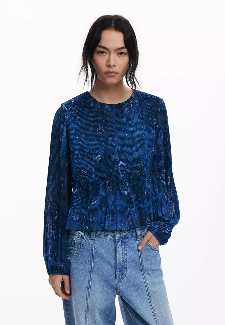 Long-sleeve pleated blouse