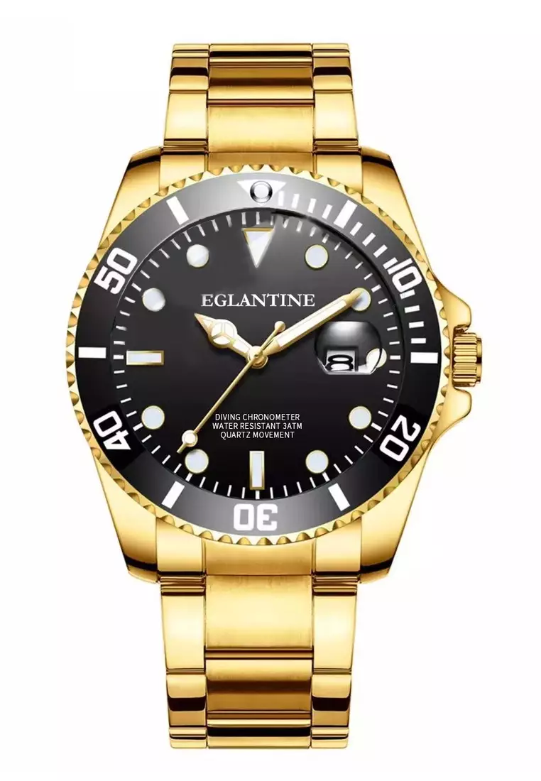 EGLANTINEDiver's Watch, Gold color Steel Case and Bracelet, Black Dial and Turning Bezel, Quartz Movement17600.004399.00