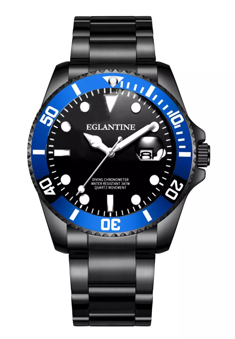 EGLANTINEDiver's Watch, IP Black Metal Case and Bracelet, Black Dial, Blue Turning Bezel, Quartz Movement17600.004399.00